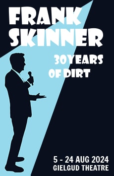 Following a sell-out run at the Edinburgh Fringe and 7-nights at the Lyric Theatre, comic legend Frank Skinner transfers his critically acclaimed new show 30 YEARS OF DIRT to the Gielgud Theatre for 14 shows only.