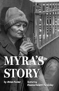 Meet Myra McLaughlin, a middle-aged homeless alcoholic surviving on the streets of Dublin. With extraordinary stories to share, Myra is willing to tell the tales of a wild past, as she begs onlookers at her usual spot by Ha’Penny Bridge.