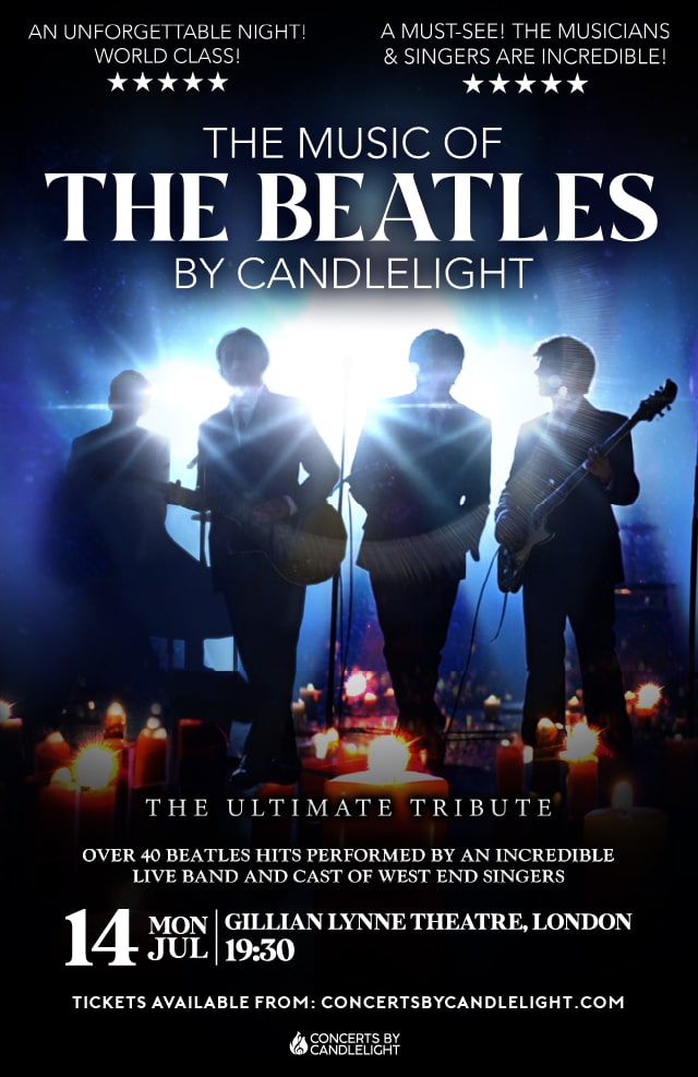 This incredible show features best-loved songs including Help!, Hey Jude, Let it Be, All You Need Is Love, Yesterday and many more, performed at the beautiful Gillian Lynn Theatre, by candlelight.
